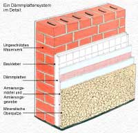 gereinigt. Danach werden in der Regel die Dämmplatten mit Spezialmörtel